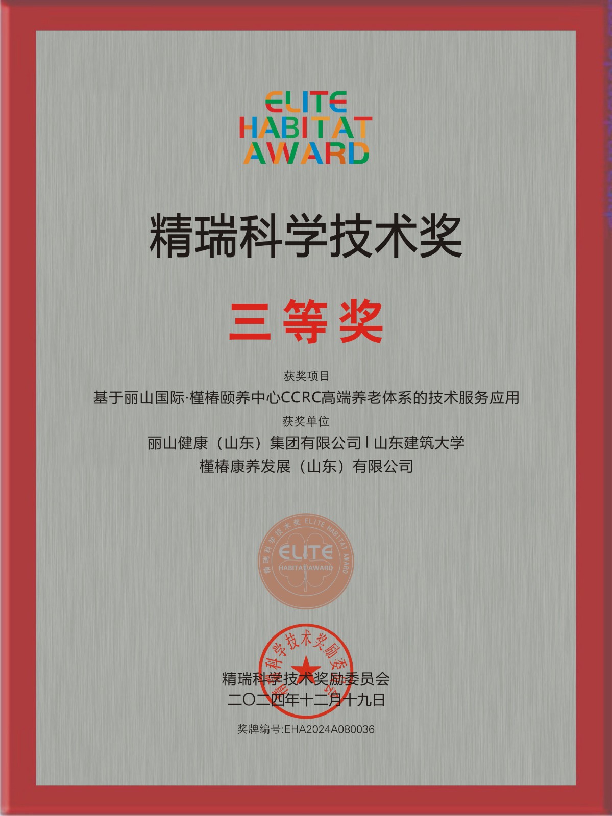 精瑞科学技术奖 · 单位证书